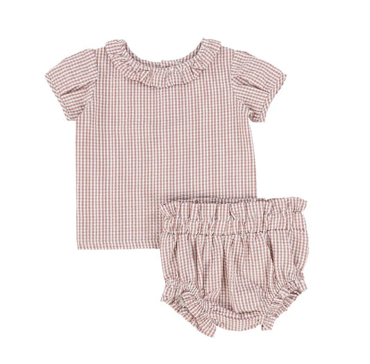 Gingham Ruffle Blouse Set